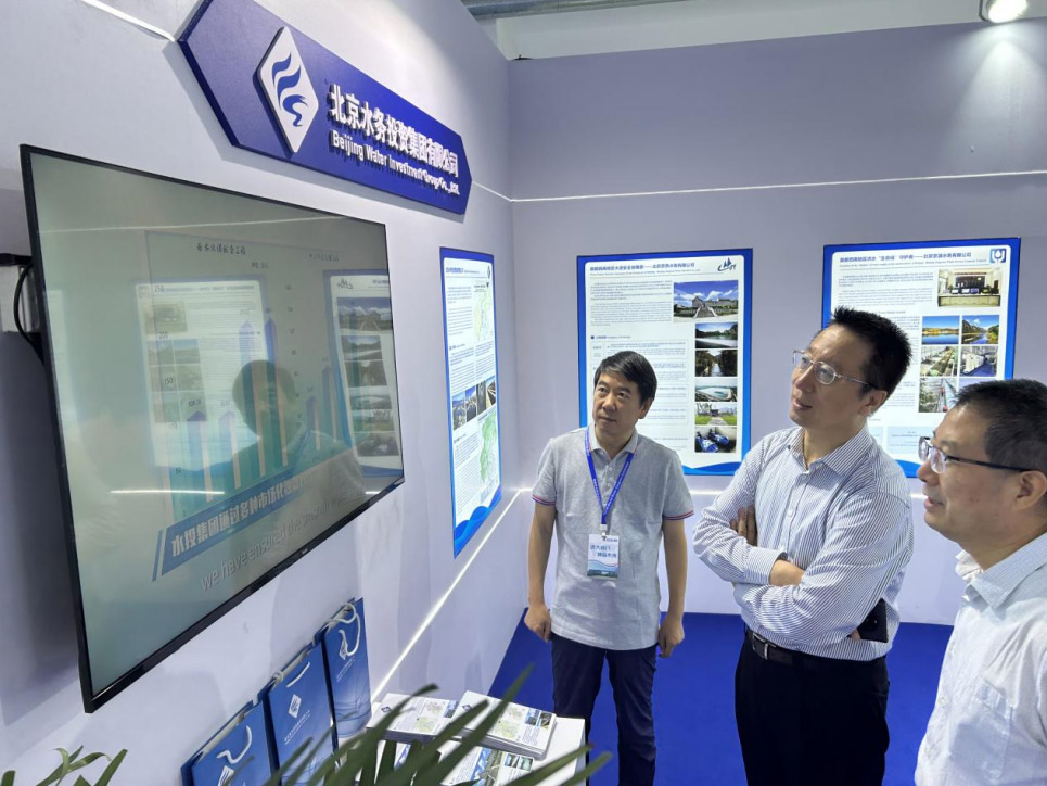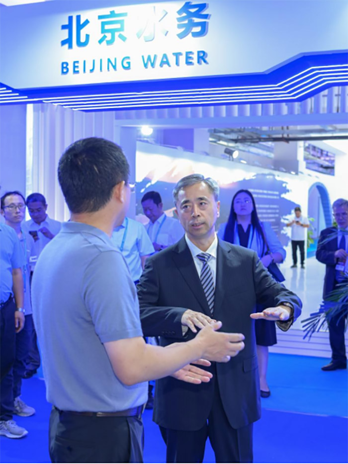 9月11日,北京市水务局局长潘安君参观北京水务展区, 并前往伟德国际1946bv官网集团展位参观指导,伟德国际1946bv官网集团总会计师张睿、副总经理张文理陪同。